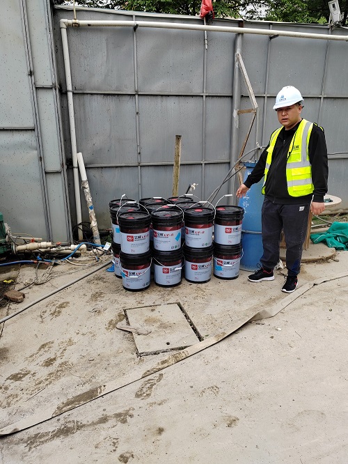 3.施工現(xiàn)場添加步驟:每立方混凝土配合比適當(dāng)減水+LV-8自愈型無機(jī)納米結(jié)晶防水劑,加入混凝土罐車中攪拌均勻,快速攪拌3~8分鐘,攪拌均勻即可澆筑。